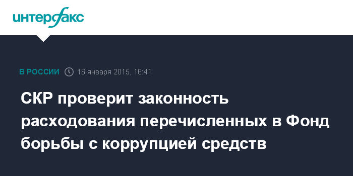 СКР проверит законность расходования перечисленных в Фонд борьбы с коррупцией средств