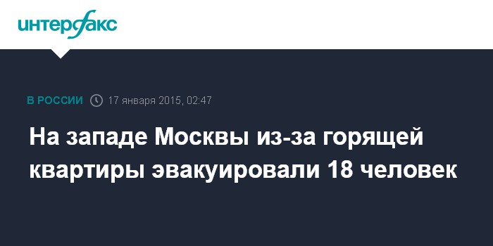 Москва. 17 января. INTERFAX.RU - Почти два десятка человек эвакуированы из дома на западе Москвы из-за пожара. Об этом "Интерфаксу" сообщили в субботу в пресс-службе ГУ МЧС РФ по Москве.