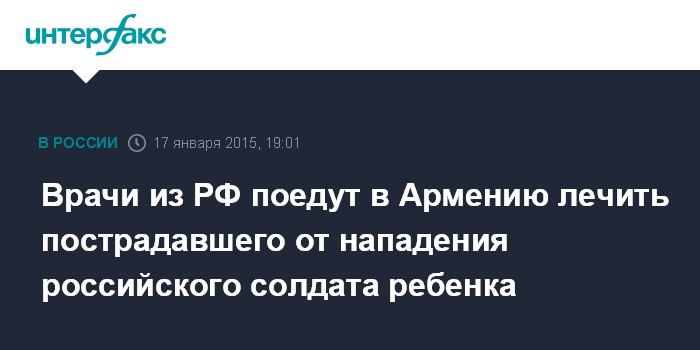 Москва. 17 января. INTERFAX.RU - Российский Минздрав направляет в Ереван ведущих специалистов для помощи в лечении ребенка, который выжил при нападении российского военнослужащего на семью Аветисян.