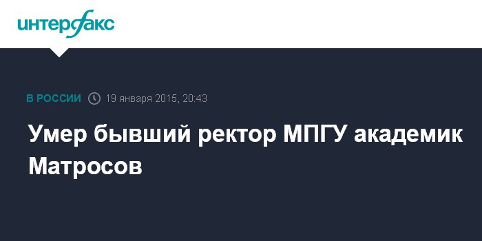 "Да, это так. Известие поступило сегодня днем. Он отдал значительную часть своей жизни российскому образованию и российской науке ", - сказал Сергей Матросов в понедельник.