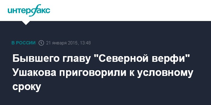 Москва. 21 января. INTERFAX.RU - Дзержинский районный суд Петербурга приговорил бывшего генерального директора ОАО "Судостроительный завод "Северная верфь" Александра Ушакова к условному сроку за хищение.