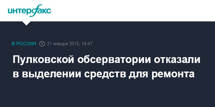 Москва. 21 января. INTERFAX.RU - Федеральное агентство научных организаций (ФАНО) не сможет выделить Пулковской обсерватории РАН (ГАО РАН) всей суммы, необходимой для ремонта комплекса исторических зданий и скульптур, сообщили "Интерфаксу" в пресс-службе ФАНО.