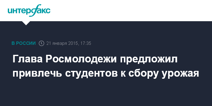 Москва. 21 января. INTERFAX.RU - Глава Росмолодежи Сергей Поспелов предлагает возобновить в России практику массового направления студентов "на картошку" в рамках курса на сокращение импорта сельскохозяйственной продукции.