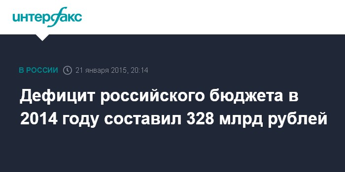 Дефицит российского бюджета в 2014 году составил 328 млрд рублей