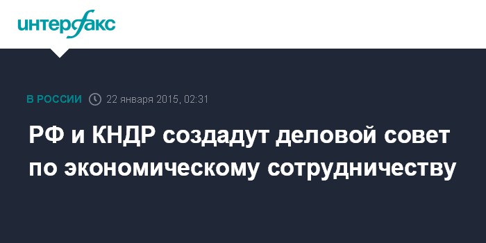 Москва. 22 января. INTERFAX.RU - До конца января РФ и КНДР могут создать деловой совет для совместной работы и взаимодействия северокорейских и российских бизнес-сообществ, сообщил вице-президент ТПП Владимир Страшко в ходе совещания в Москве, которое провел министр по развитию Дальнего Востока Александр Галушка.