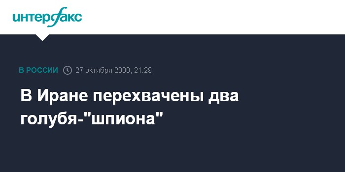 Москва. 27 октября. INTERFAX.RU - Сотрудники спецслужб Ирана выловили двух голубей-"шпионов", сообщает в понедельник иранская газета "Этемад мелли".