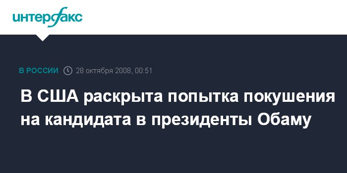 Вашингтон. 28 октября. ИНТЕРФАКС - В США раскрыта попытка покушения на кандидата в президенты США Барака Обаму, сообщают американские СМИ со ссылкой на федеральные органы безопасности.