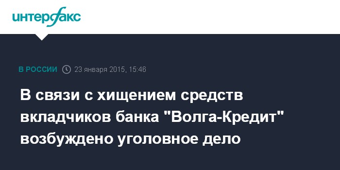 В связи с хищением средств вкладчиков банка "Волга-Кредит" возбуждено уголовное дело