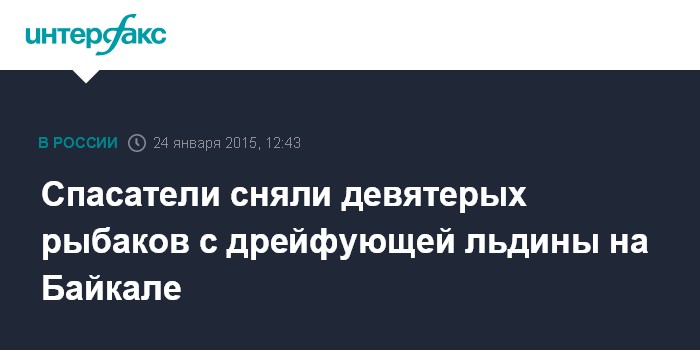 Москва. 24 января. INTERFAX.RU - Все девять рыбаков спасены со льдины, оторвавшейся от берега острова Ольхон на озере Байкал, сообщил "Интерфаксу" начальник пресс-службы МЧС по Иркутской области Андрей Шутов.