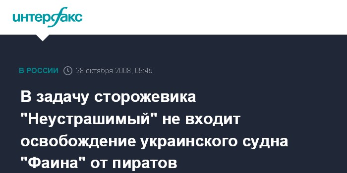 "Перед экипажем "Hеустрашимого" не стоит задача прибыть в Аденский залив и громить пиратов, захвативших судно "Фаина". Ведение переговоров по освобождению иностранного судна также не входит в компетенцию Военно-морского флота", - сказал собеседник агентства.