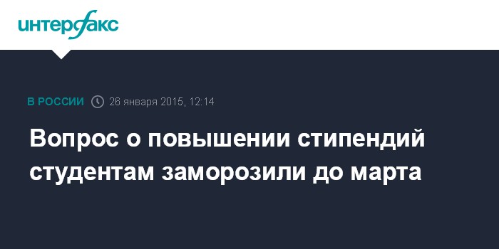 Москва. 26 января. INTERFAX.RU - В Минобрнауки не подтвердили, но и не опровергли информацию о том, что повышение студенческих стипендий до 20% может быть отложено на год.