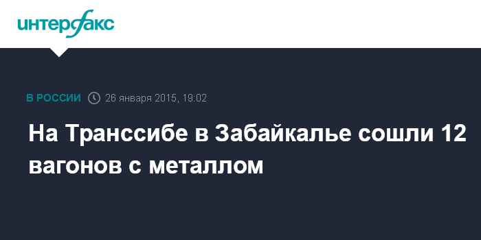 Москва. 26 января. INTERFAX.RU - Сход вагонов с металлом произошел на Транссибе на перегоне Семиозерный-Амазар в Могочинском районе Забайкальского края, сообщает Сибирский региональный центр МЧС.