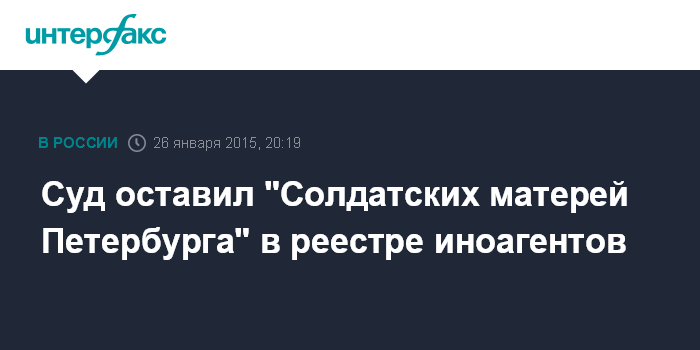 В августе 2014 года сообщалось, что министерство внесло в список иноагентов 14 организаций, в том числе и "Солдатские матери" северной столицы.