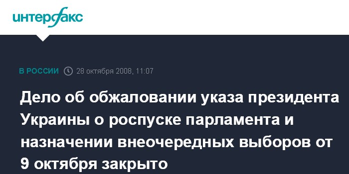 Дело об обжаловании указа президента Украины о роспуске парламента и назначении внеочередных выборов от 9 октября закрыто