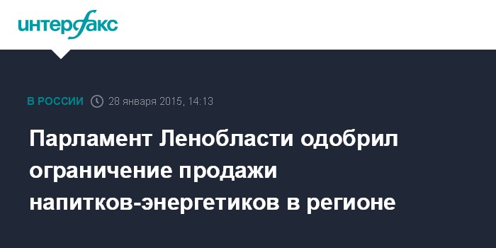 На территории Ленобласти предлагается ввести запрет на продажу слабоалкогольных "энергетиков" несовершеннолетним, а также ограничить продажу безалкогольных "энергетиков" в медицинских и образовательных учреждениях, в местах проведения культурно-массовых мероприятий с участием подростков и молодежи, в организациях культуры и спорта.