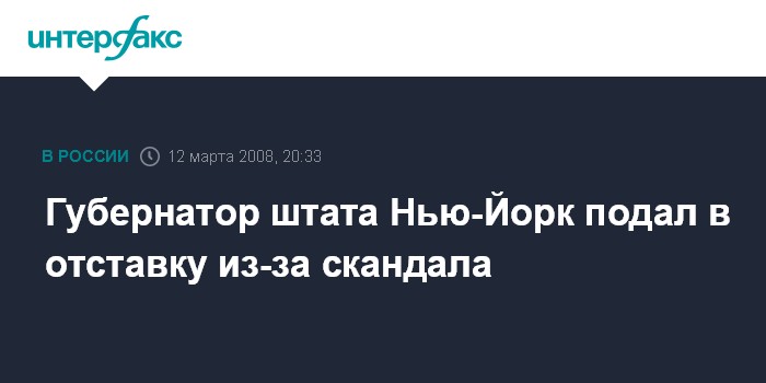 Нью-Йорк. 12 марта. INTERFAX.RU - Объявление об уходе в отставку сделал в среду губернатор американского штата Нью-Йорк Элиот Спитцер.