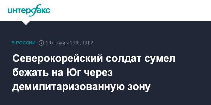 Сеул. 28 октября. INTERFAX.RU - Военнослужащий Корейской народной армии смог совершить побег в Южную Корею через демилитаризованную зону между двумя государствами, сообщил представитель южнокорейской разведслужбы.