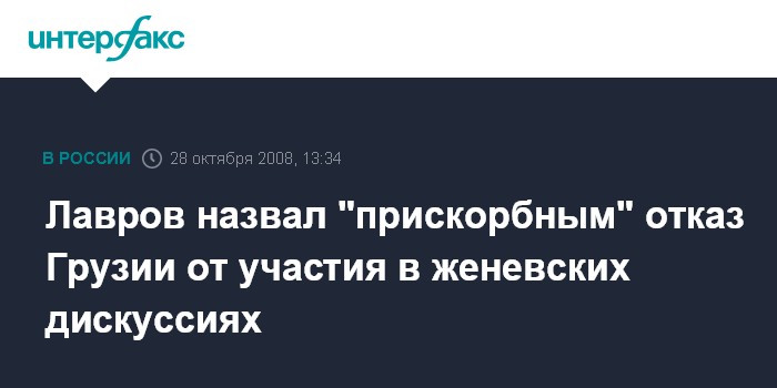 "Если Грузия действительно отказывается участвовать в женевских дискуссиях, если там будут присутствовать представители Абхазии и Южной Осетии, то это прискорбно. Это означает прямой вызов всем тем, кто искренне заботится об обеспечении безопасности в регионе", - сказал Лавров на пресс-конференции по итогам заседания Совета постоянного партнерства Россия - ЕС.