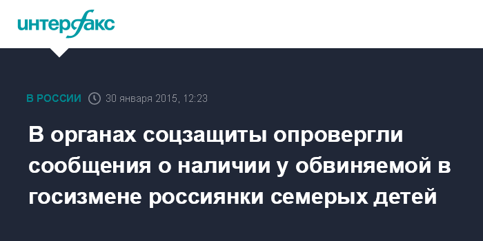 В органах соцзащиты опровергли сообщения о наличии у обвиняемой в госизмене россиянки семерых детей