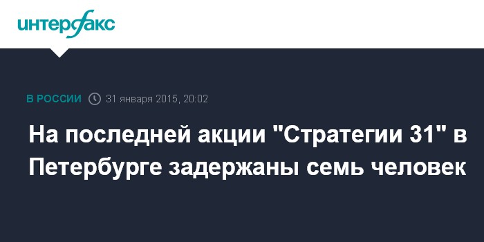 Москва. 31 января. INTERFAX.RU - Семь человек задержаны при попытке провести несанкционированную акцию сторонников незарегистрированной партии "Другая Россия" у Гостиного двора в Санкт-Петербурге в субботу, сообщили "Интерфаксу" в пресс-службе регионального главка МВД.