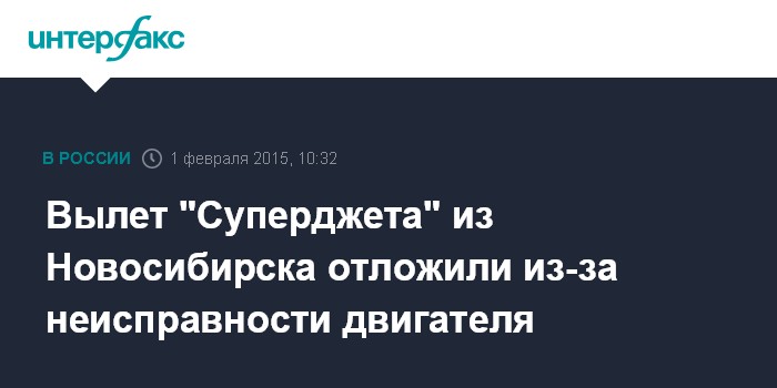Москва. 1 февраля. INTERFAX.RU - Вылет самолета "Сухой - Суперджет" авиакомпании "Якутия" из Новосибирска в Екатеринбург отложен более чем на сутки, сообщила "Интерфаксу" старший помощник Западно-Сибирского транспортного прокурора Оксана Горбунова.