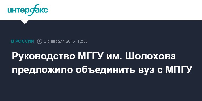 Москва. 2 февраля. INTERFAX.RU - Руководство Московского государственного гуманитарного университета им. М.А. Шолохова предложило главе Минобрнауки РФ Дмитрию Ливанову объединить вуз с Московским педагогическим государственным университетом.