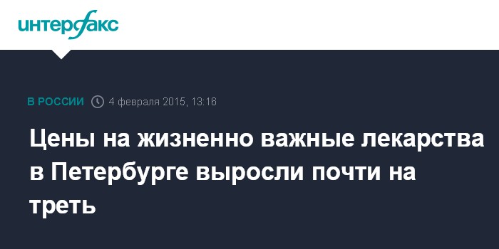 Москва. 4 февраля. INTERFAX.RU - Цены на жизненно важные лекарства в Петербурге за последние месяцы выросли на 25-30%, сообщил журналистам заместитель руководителя управления ФАС по Петербургу Петр Яковлев в среду.