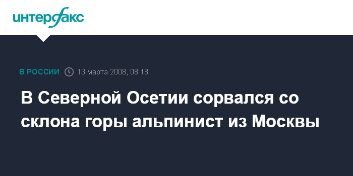 Ростов-на-Дону. 13 марта. INTERFAX.RU - Альпинист из московской альпинистской группы сорвался со склона горы Тыбау (Северная Осетия) на высоте 2500-2600 метров, сообщили агентству "Интерфакс" в пресс-службе ЮРЦ МЧС РФ в среду.