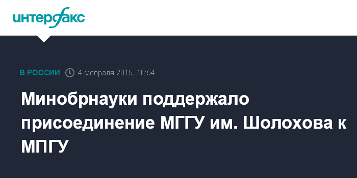 Москва. 4 февраля. INTERFAX.RU - Минобрнауки РФ поддержало решение о присоединении Московского государственного гуманитарного университета имени Шолохова к Московскому педагогическому государственному университету, сообщили "Интерфаксу" в пресс-службе Минобрнауки.