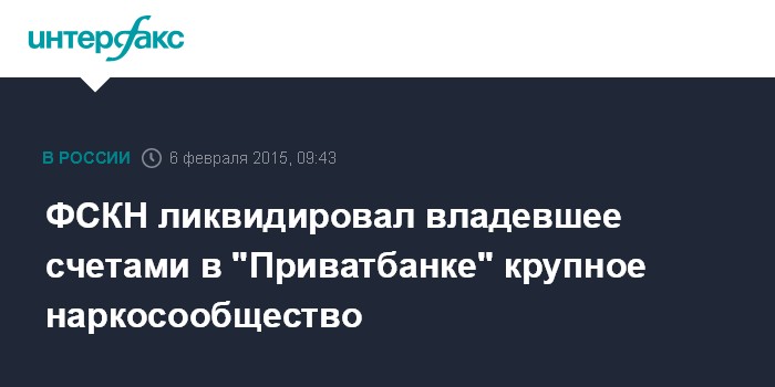 Москва. 6 февраля. INTERFAX.RU - В Федеральной службе по контролю за оборотом наркотиков (ФСКН) заявили о ликвидации транснационального преступного сообщества, которое сбывало синтетические наркотики из Юго-Восточной Азии в России. Там отметили, что оплата за наркотики оседала на счетах в "Приватбанке", принадлежащем украинскому олигарху Игорю Коломойскому.