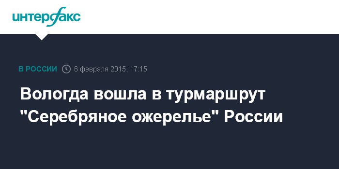 Вологда вошла в турмаршрут "Серебряное ожерелье" России