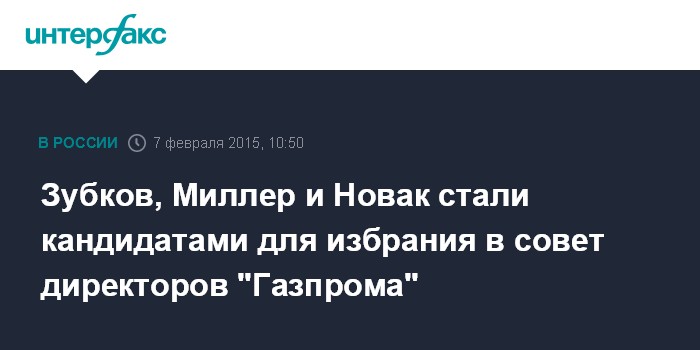 В списке кандидатов в совет директоров, опубликованном в субботу на сайте правительства - спецпредставитель президента РФ по взаимодействию с Форумом стран - экспортеров газа Виктор Зубков, председатель правления "Газпрома" Алексей Миллер, министр энергетики Александр Новак, председатель правления "Газпромбанка" Андрей Акимов, член совета директоров "Газпрома" Фарит Газизуллин, ректор российской академии народного хозяйства и госслужбы Владимир Мау, первый зампред - член правления ВЭБ Андрей Сапелин.