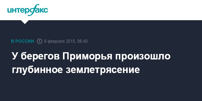 Москва. 8 февраля. INTERFAX.RU - Землетрясение магнитудой 5.0 произошло у восточных берегов Приморья, сообщил Дальневосточный региональный центр МЧС (ДВРЦ) со ссылкой на данные Геофизической службы РАН.