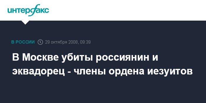 В Москве убиты россиянин и эквадорец - члены ордена иезуитов