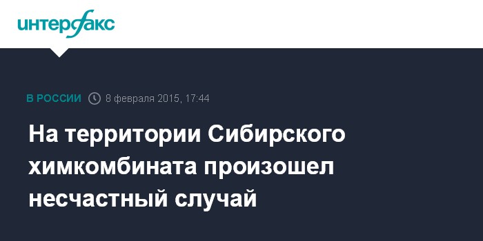 Москва. 8 февраля. INTERFAX.RU - Несчастный случай произошел с сотрудником на территории ОАО "Сибирский химический комбинат" (СХК, входит в ТВЭЛ), сообщили в пресс-службе СХК.