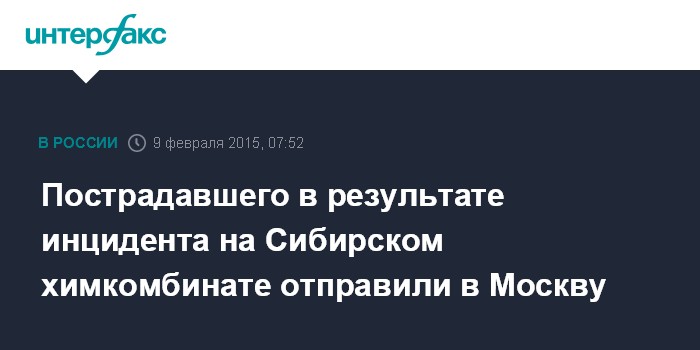 Пострадавшего в результате инцидента на Сибирском химкомбинате отправили в Москву