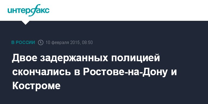 Москва. 10 февраля. INTERFAX.RU - Задержанный скончался в костромском управлении полиции, аналогичный случай произошел в Ростове-на-Дону, сообщили "Интерфаксу" в пресс-центре МВД России.