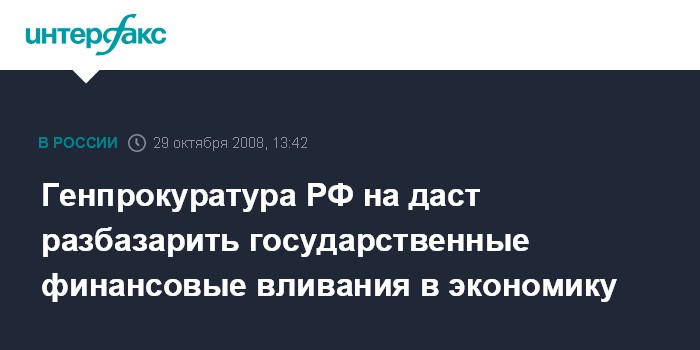 Генпрокуратура РФ на даст разбазарить государственные финансовые вливания в экономику