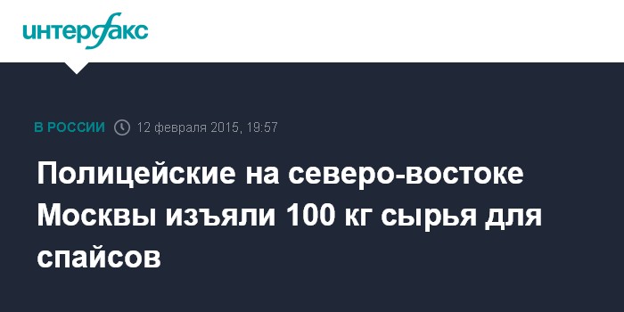 Москва. 12 февраля. INTERFAX.RU - Около 100 кг сырья для производства спайсов изъято на северо-востоке Москвы, сообщили "Интерфаксу" в пресс-службе столичного главка полиции.