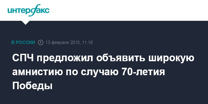 Москва. 13 февраля. INTERFAX.RU - В президентском совете по правам человека призывают объявить широкую амнистию в связи с 70-летием Победы.