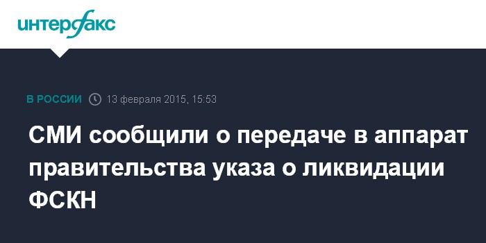 По данным "Известий", проект указа президента об упразднении ФСКН в феврале поступил в аппарат правительства из государственно-правового управления администрации президента.
