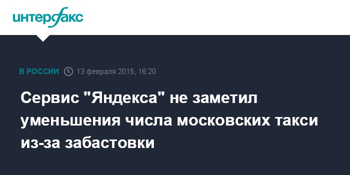 Москва. 13 февраля. INTERFAX.RU - "Яндекс" не отмечает снижения количества работающих в Москве машин в сервисе "Яндекс.Такси" из-за пятничной забастовки таксистов.