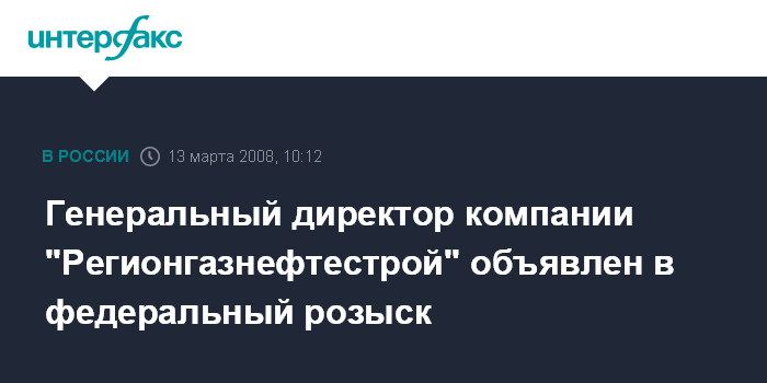 Генеральный директор компании "Регионгазнефтестрой" объявлен в федеральный розыск