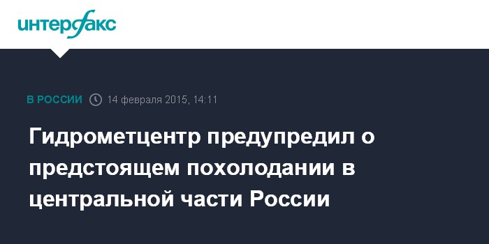 Москва. 14 февраля. INTERFAX.RU - Синоптики прогнозируют похолодание в центре европейской части России. "Это связано с мощным антициклоном, который установится над европейской частью России", - сообщил в субботу "Интерфаксу" директор Гидрометцентра Роман Вильфанд.