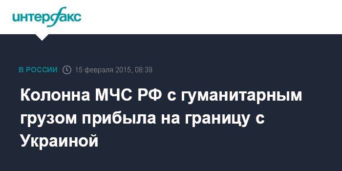 Москва. 15 февраля. INTERFAX.RU - Автоколонна МЧС России с гуманитарной помощью для Донбасса прибыла на российско-украинскую границу, сообщил замначальника Национального центра управления в кризисных ситуациях МЧС Олег Воронов.