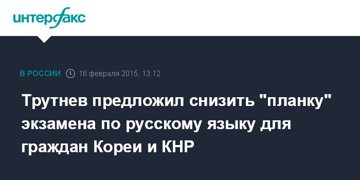Москва. 16 февраля. INTERFAX.RU - Существующие нормативы сдачи русского языка слишком сложны для работающих на Дальнем Востоке корейцев и китайцев, и эти нормы требуют корректировки, считает вице-премьер РФ Юрий Трутнев.