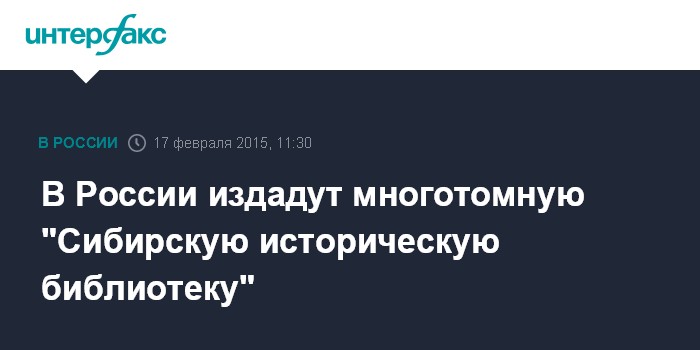 В России издадут многотомную "Сибирскую историческую библиотеку"