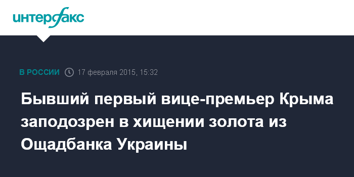 Бывший первый вице-премьер Крыма заподозрен в хищении золота из Ощадбанка Украины