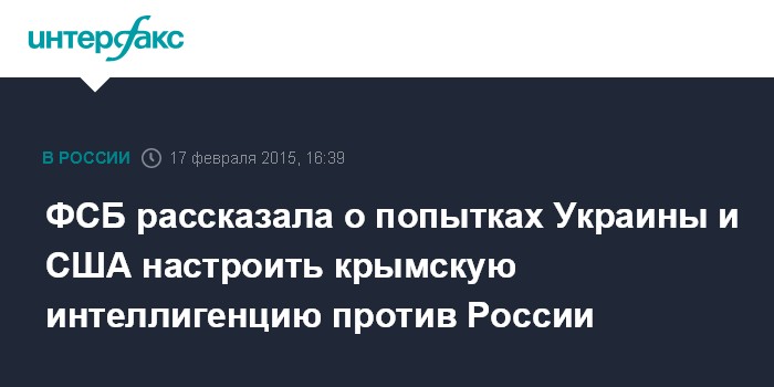 Москва. 17 февраля. INTERFAX.RU - Российские спецслужбы считают, что руководство Украины пытается настроить крымскую интеллигенцию против России.