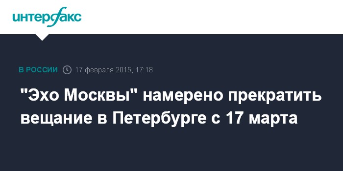 Он уточнил, что, согласно документу, последним днем пользования радиоканалом "Эхо Москвы" и распространения его на территории Санкт-Петербурга и Ленинградской области на частоте 91.5 мегагерц считается 16 марта 2015 года.